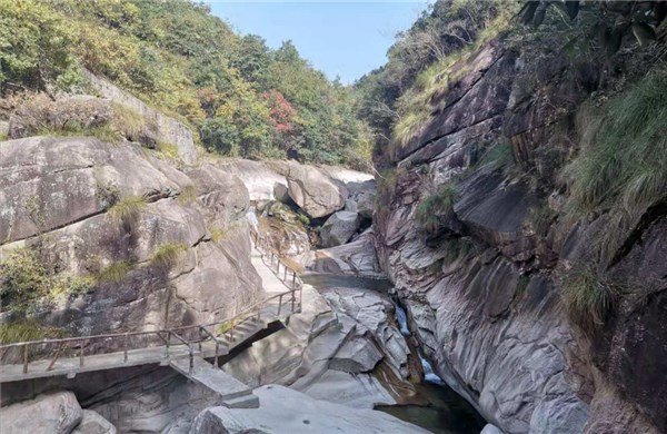 績溪鄣山大峽谷是國家級自然保護區—— 清涼峰的南大門,景色以山水相依為特色。鄣山大峽谷的絕妙之處在于其溪谷之中的石水交融,高峽幽谷之間,水繞石來石圍水,堆石為灘,跌水成瀑,瀑灘相連,常常是白練疊翠,如絹如絲,華池遍布,光彩奪目,天下水色秀色其兼有之。在這自然原始的獨特環境里,不僅有大量的珍稀動物和植物,而且景區中50多個景點各具特色和神奇,森林覆蓋率高達97%,PM2.5指數常年低于20微克/?,空氣質量達到優良標準的天數高達94.5%,水質潔凈度達到Ⅰ類標準。鄣山大峽谷之中不僅水形水色絕妙,谷中更是峰巒聳峙,怪石嶙峋,奇石兀立,形態各異,生動逼真,異彩紛呈,令人賞心悅目。