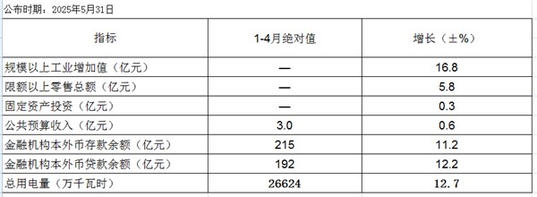 績溪縣1-4月主要經濟指標